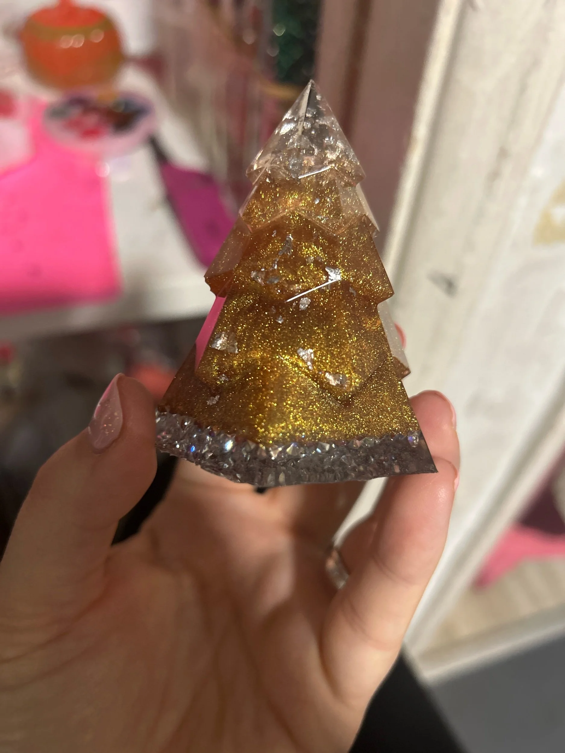 Store › Small Christmas tree Image 1 of 1 Small Christmas tree £5.00 Resin Christmas tree with silver flakes and silver crystals Quantity: Purchase Added! Resin Christmas tree with silver flakes and silver crystals